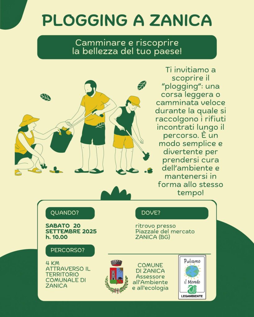 Sabato 20 settembre ore 10.00, ritrovo al piazzale del mercato. Una corsa leggera o camminata veloce durante la quale si raccolgono i rifiuti lungo il percorso, per prendersi cura dell’ambiente e mantenersi in forma allo stesso tempo.